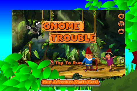 to get back at the crows by hitting them as they fly by with the rocks in the pouches you collect. Just tap the crow to hit and earn extra mushrooms for the shop. In the shop, buy fun new disguises to try and fool the crows. There are six classic disguises, three for each gnome, and more coming very soon. Try on a Zombie suit for Gus or a Cat Girl suit for Abby. Also, try the Clowns, the King and Princess to see if they help your run go better.