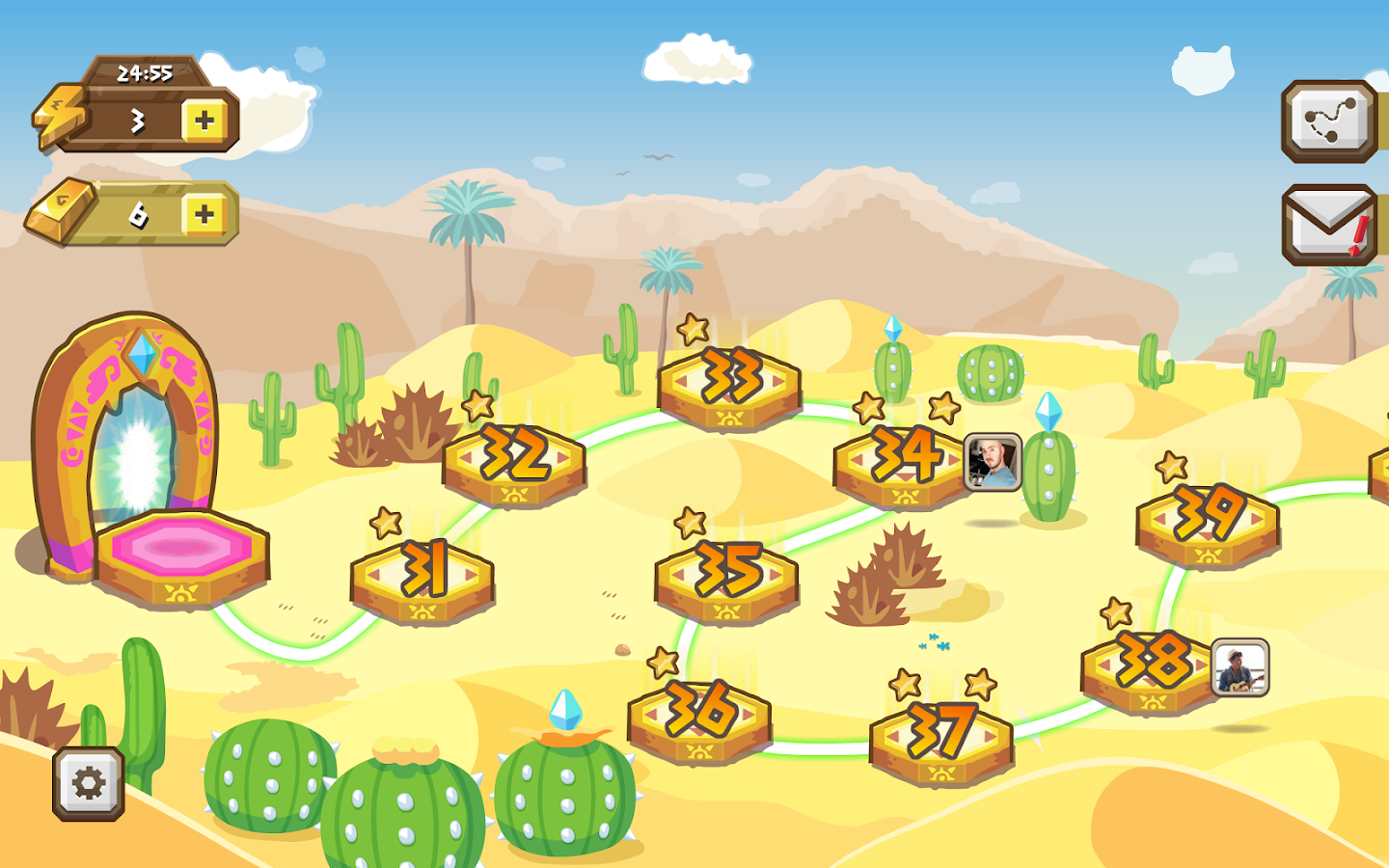 Get social! Connect to Facebook and challenge your friends in the leaderboards, see their progress on the island map, and share special gifts!