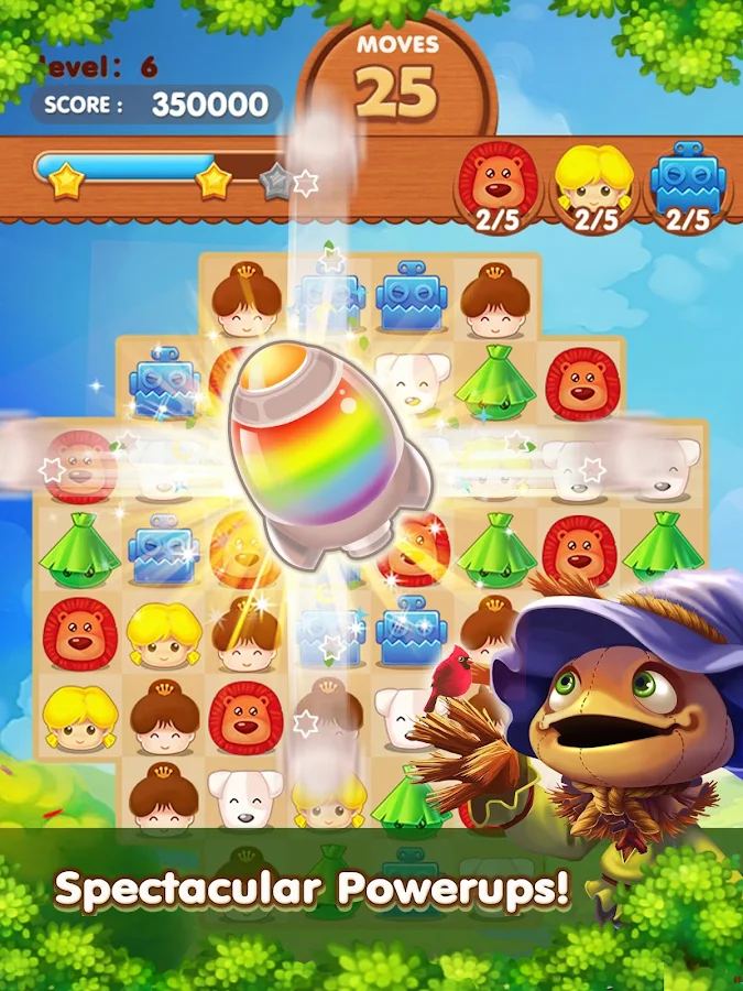 Join Dorothy, Toto, and friends on the Yellow Brick Road as they make their way to the Emerald City in search of the Wonderful Wizard. Match 3 or more blocks to rack up points and create spectacular boosters that can help you surpass the game’s many challenging levels. Help your companions along the way by collecting items that they need. There is so much to do in this awesome free puzzle game!