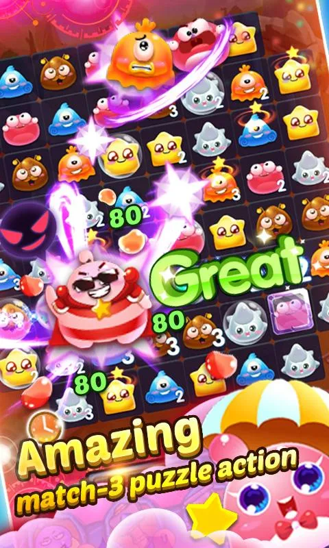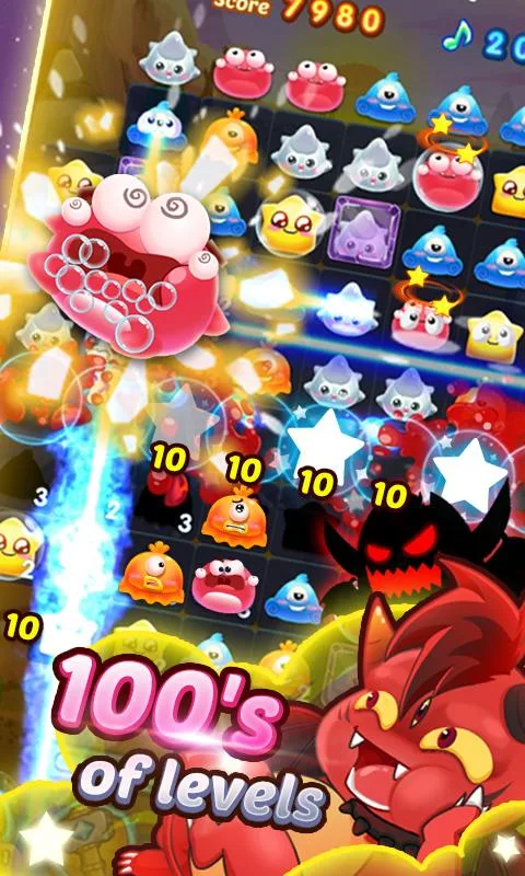• Pop the bubble monsters by connecting 3 or more in a row.
