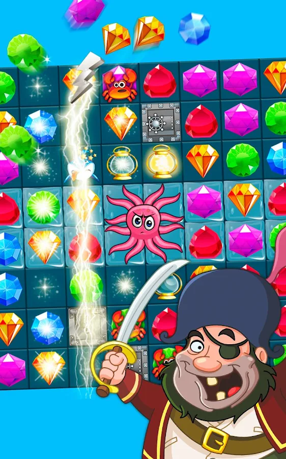 If you have any difficulties passing a level you can use coins to buy a helpful bonus. The coins are also used to restore lives and buy rum for the sailors in order to open new episodes.