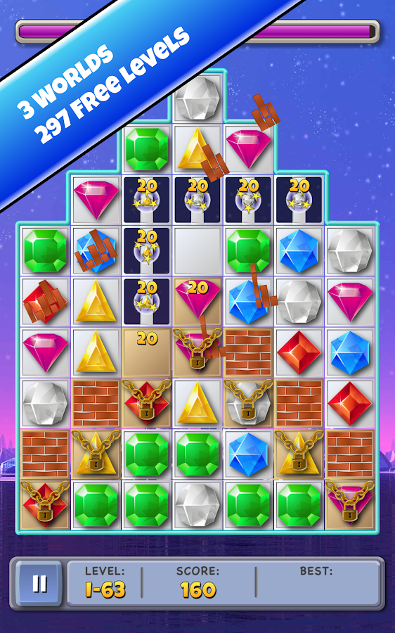 Match jewels and have fun! Eliminate all obstacles and let the candy fall down.