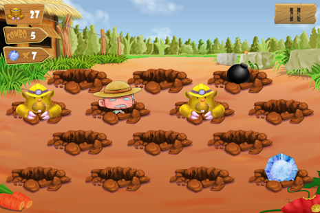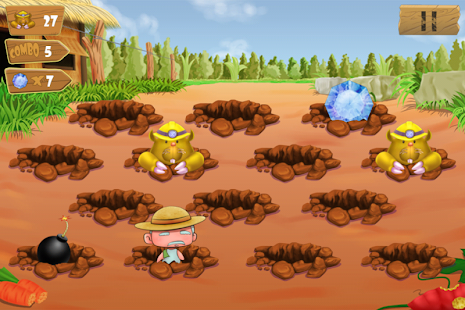 The moles are stealing vegetables in grandfather’s garden. You have to stop them by hit on their head , don’t let them run away. They are too many and dodgy, try to hit them, DO NOT hit your grandpa and the bombs. This game is suitable for all ages, very funny and challenge. There are so many missions from easy to hard.
