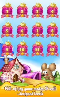 Good, Awesome, or Perfect score ★ ★ BOOSTERS (POWER-UPS) ★ ★ ✔ Boom Explosion: popcorn collect sweet food in a 9-cell region ✔ Blasting Line: get & jam all food on the column or row ✔ Gift Time: add 5 seconds to the sugar puzzle ✔ Chocolate Icing Pop: get & jam all sweet cakes have same color ✔ Hungry Spider: use the spider to eat yummy food ✔ Rush Time: double score you get in 10 seconds ✔ In biscuit shop you can buy Boom Explosion, Blasting Line, Hungry Spider ★ ★ Fun time in pudding kingdom ★ ★