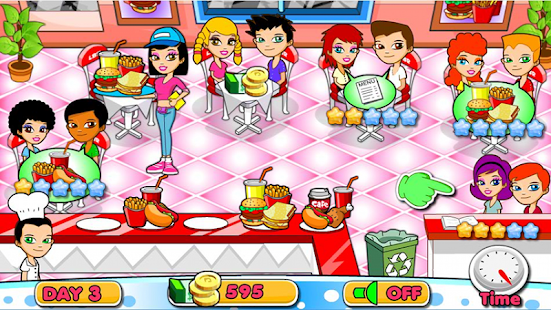 In Diner Restaurant you can serve your customers the richest burgers, hot dogs, sandwiches, chips and any drink they want.