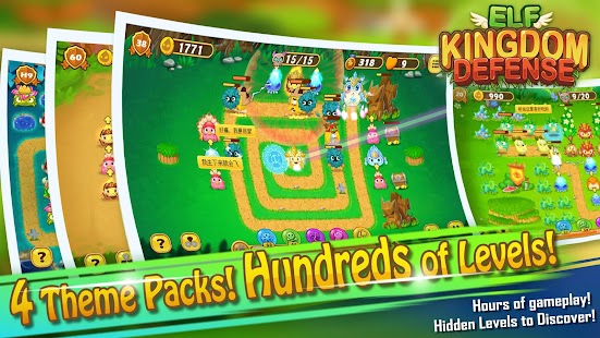 KEY FEATURES • 20+ cute elf towers to unlock. • Hundreds of levels to challenge! • 4 unique theme packs! • 70+ cute monsters, each monster has a unique sound. • 4 unique God Elf equipment, each with unique skill. • Addictive gameplay, hours of fun. • Perfectly balanced challenges! • Login with facebook, challenge friends of every level. • Tons of hidden levels and elves for you to discover!