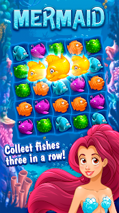 But one day the marine inhabitants turned out in danger: piles of garbage were dumped into the ocean. Small fishes were frightened and gone astray among the rubbish. As future queen of the underwater kingdom, Mermaid will not throw her friends and her kingdom in trouble! You can help her clean the SeaWorld of debris, avoid the dangerous sharks and jellyfish, not get caught in the network of pirates, find the sunken treasures, solve jigsaw of oceans and rescue all the sea inhabitants! Collect seashells, let fishes out from aquariums and tin cans, burst the bubbles, accumulate treasures and receive an award from princess Mermaid!