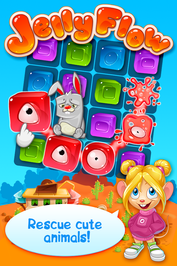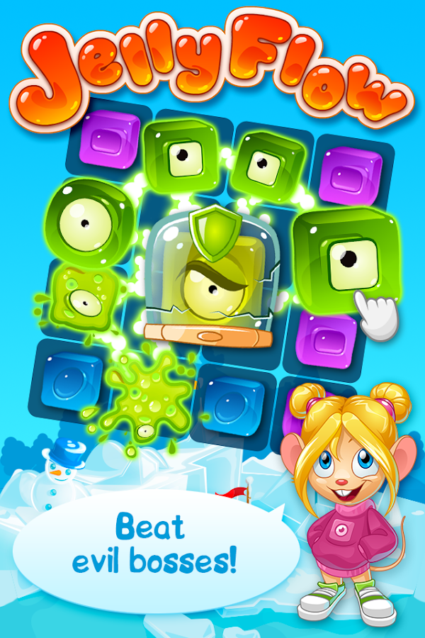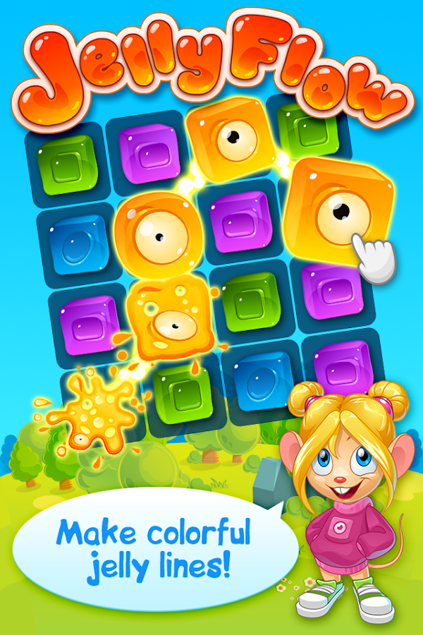 Jelly Flow is a mixture of two different puzzle game types - match 3 and connection or link games. Connect at least 3 matching jellies with a line to destroy them. But it’s not always that simple, you’ll have to connect and destroy a lot and sometimes you need to think carefully to complete level tasks.