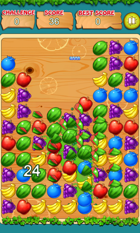 Fruit crush - swap different fruits and match 3 or more same fruits to blow them up. Save the fruit kingdom in this Android game. Do various tasks, such as destroying fruits, fruit elves rescue, destroying specific targets. Forming and destroying 4 or more fruits you can get a variety of bonuses like bombs that explode rows of fruit or fruit all around them. Set records and compete with your friends!