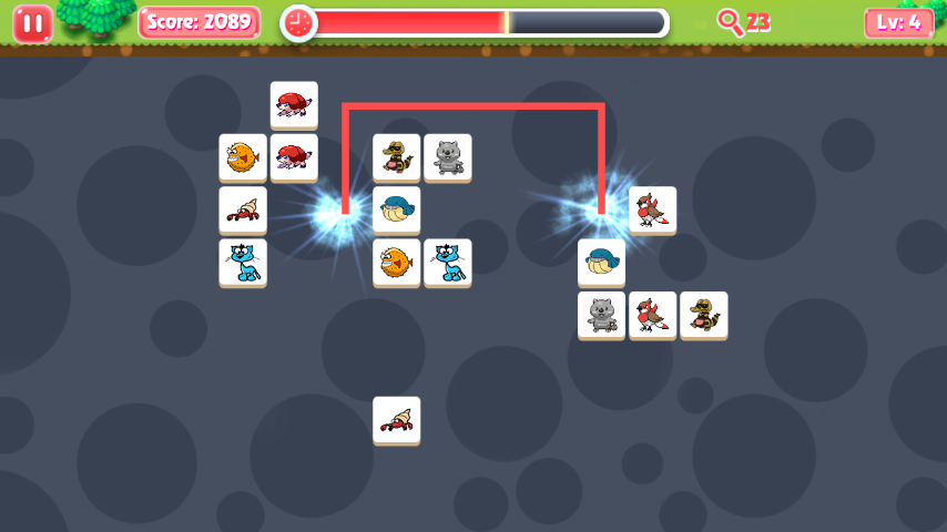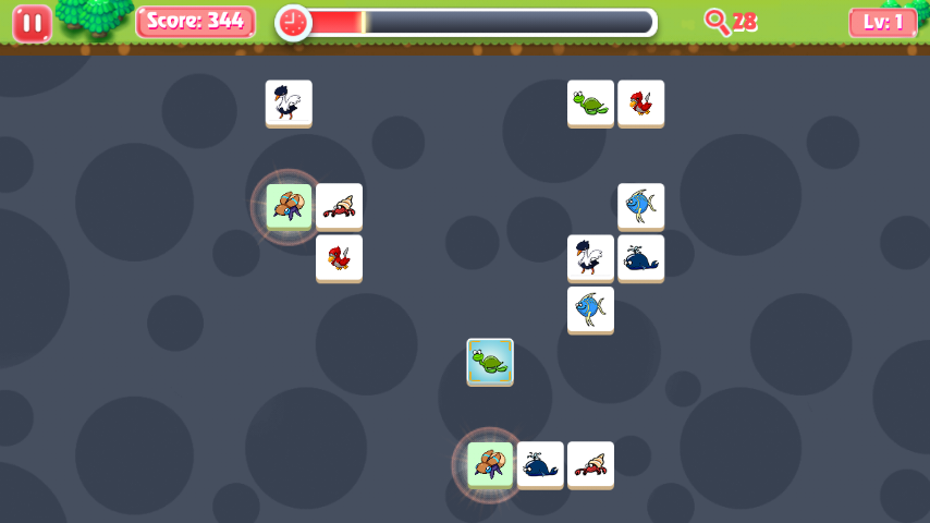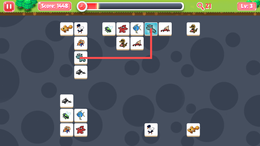 Find 2 cards with the same kind that can be connected in 3 or less than 3 lines to remove them out of board.