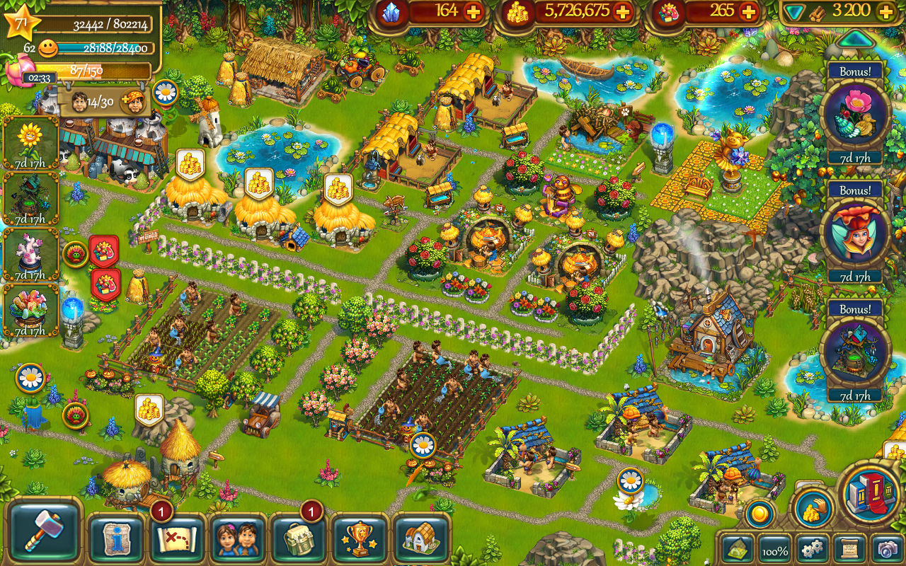 The Tribez is not just a game where you build a farm! The Tribez is an adventure where you travel to a distant past full of secrets, mysteries, and many hours of addictive exploration of an unknown, but beautiful world! You are invited to visit a primitive world inhabited by a peace-loving people, who have been hidden beyond a miles-deep portal from time immemorial. Build your own stone-age village, explore territorieshidden by mountains and seas, farm fertile lands, and lead your tribe, which considers you sent by the gods, to prosperity. The Tribez is a world in which you feel alive!
