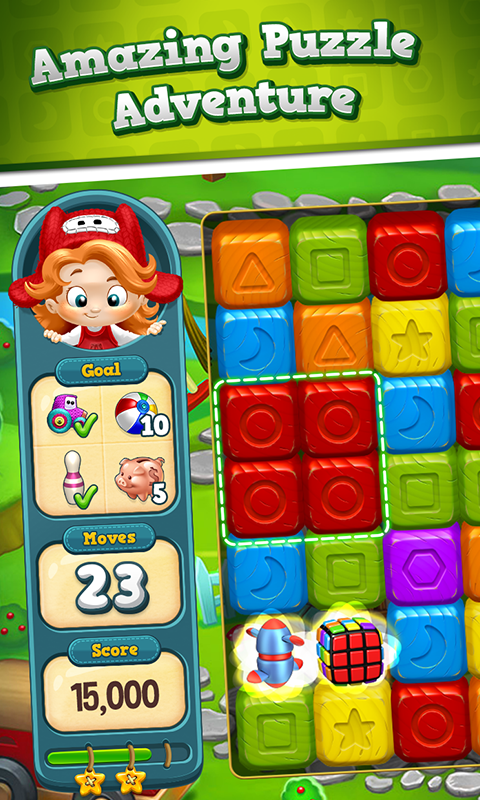 Match two or more blocks of the same color to clear the level and collect the toys from where they stuck. But be careful! It is not that easy to save all the toys while your moves are limited! Your talent in solving puzzles will be your best tool while playing this super addictive game. No more crushing candies, breaking diamonds, crunching cookies or farming. Bust the blocks and enjoy this colorful adventure!