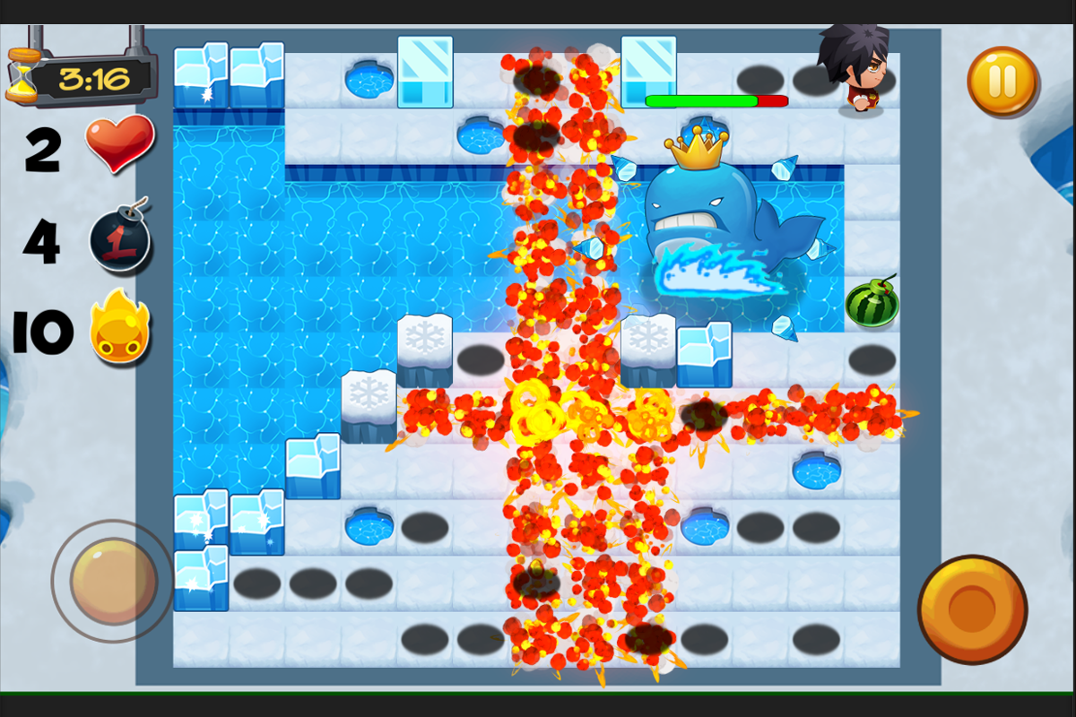 - Touch """"Bomb"""" button to set the bomb. Escape from bombing area, wait to boom and destroy target.