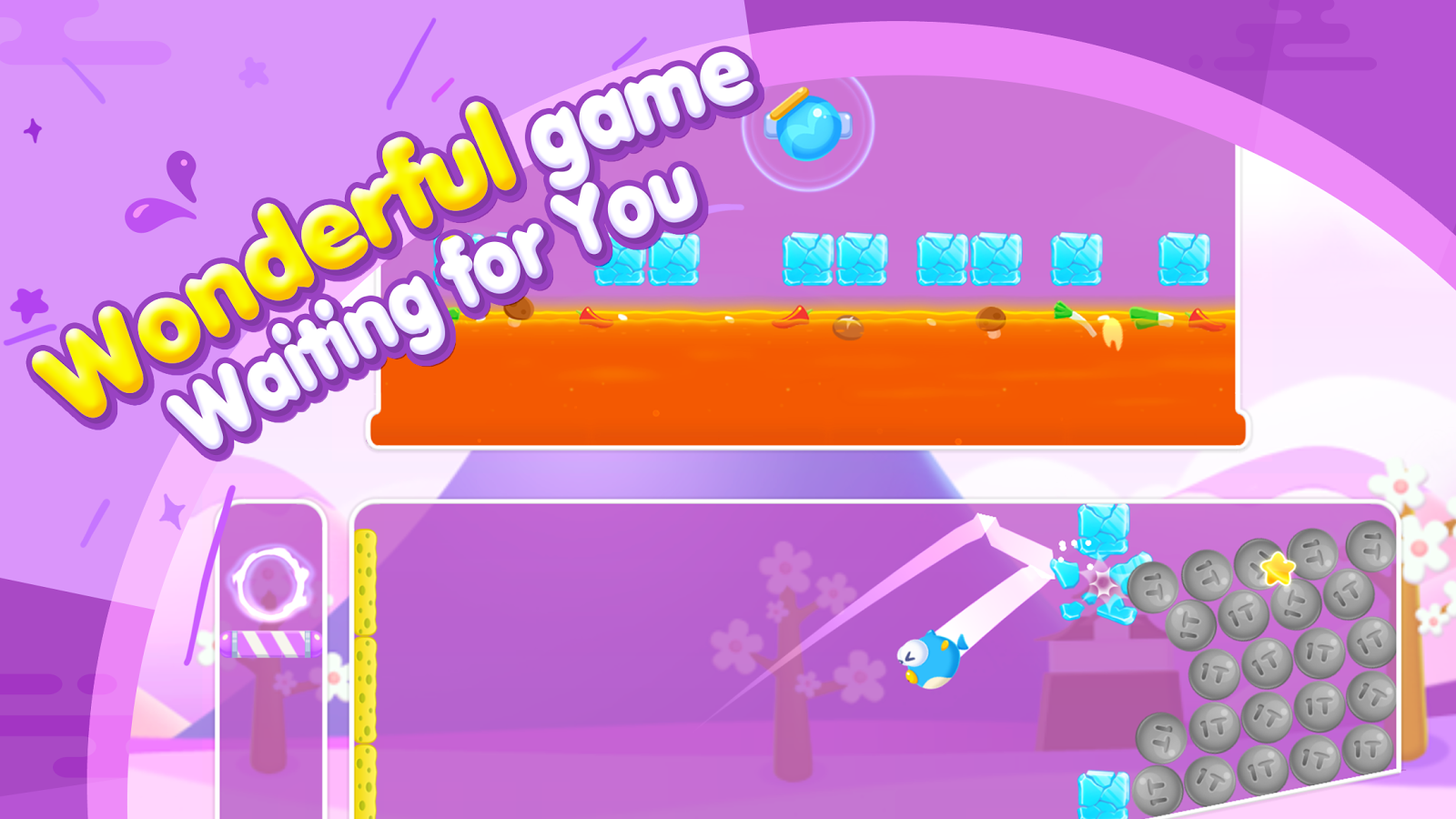Throw the plump fish out of water! Help him to meet the Pink Fish Lily. U can only catch the fish in the water. Control the speed and direction of flight by the power and angle of throw. Fish will gain the sprint skill to give u more fun!