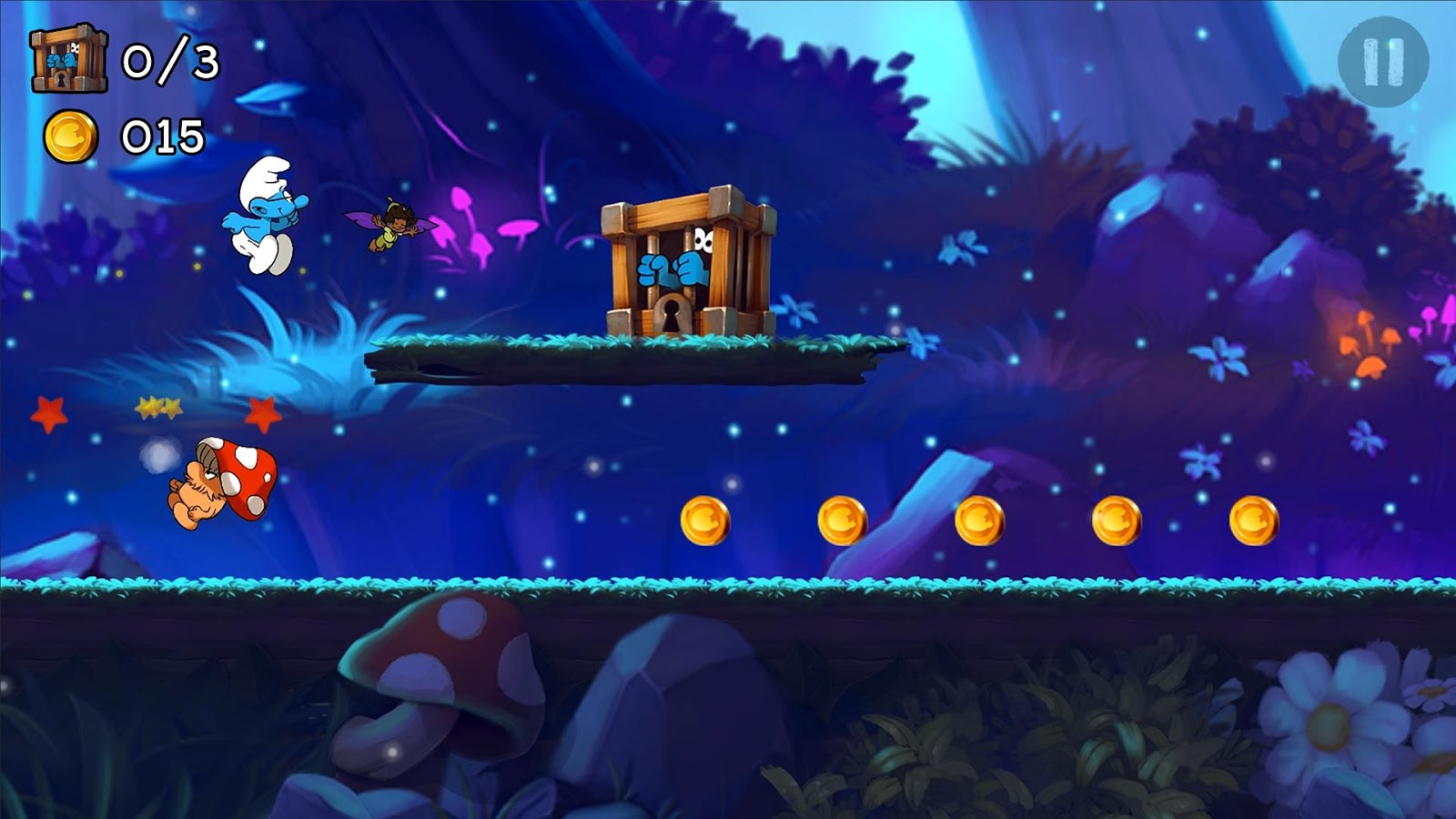 • FREE each Smurf and use their unique epic powers (Dash, double jump, stomp, magnet…) to rush through each level and set the best score.