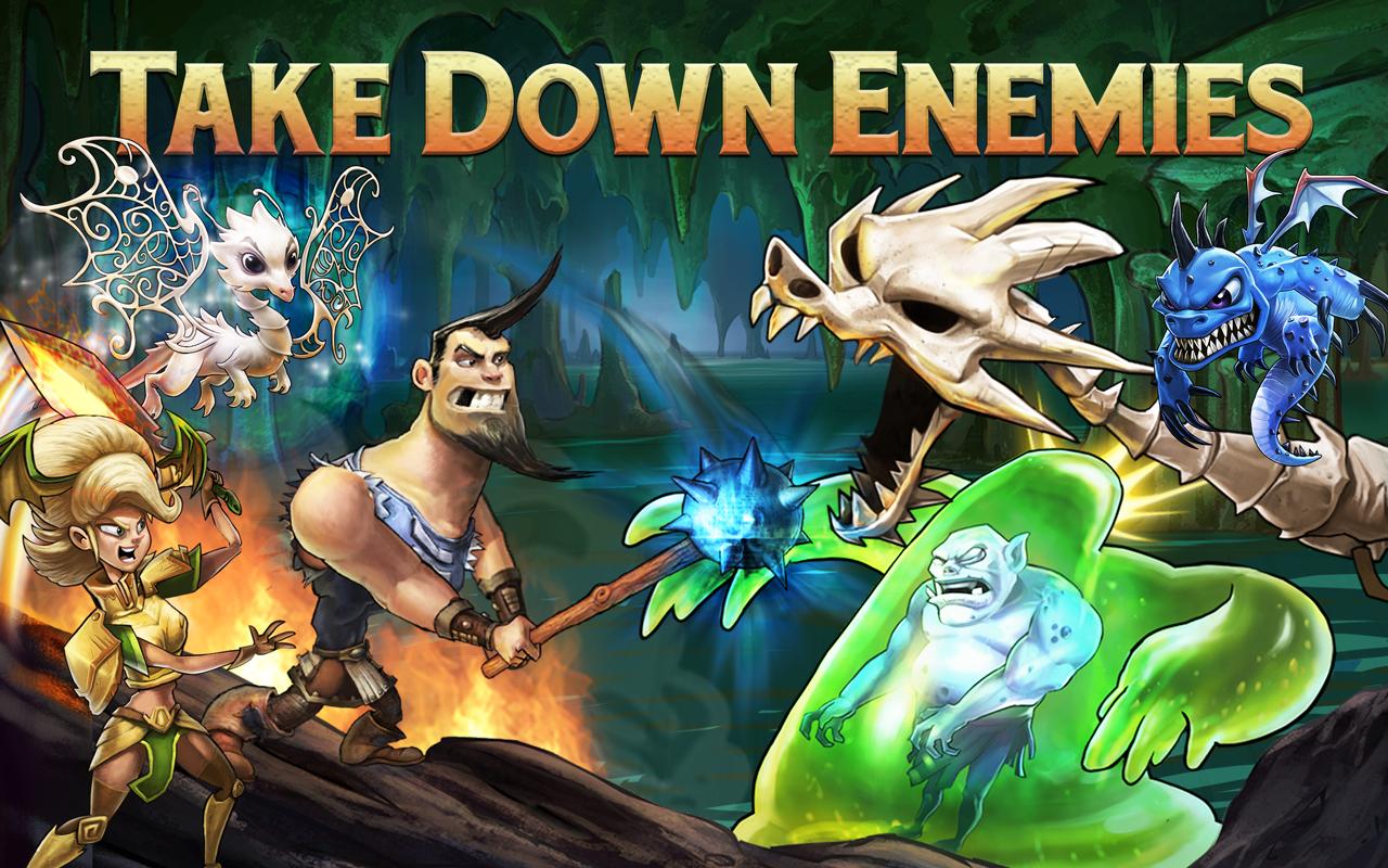+ Tons of Fantastic Heroes: Each hero has 4 deadly skills, 8 rarity levels, and totally awesome gear like Laser Kittens, Enchanted Elbow Pads and a Lucky Orc’s Foot!