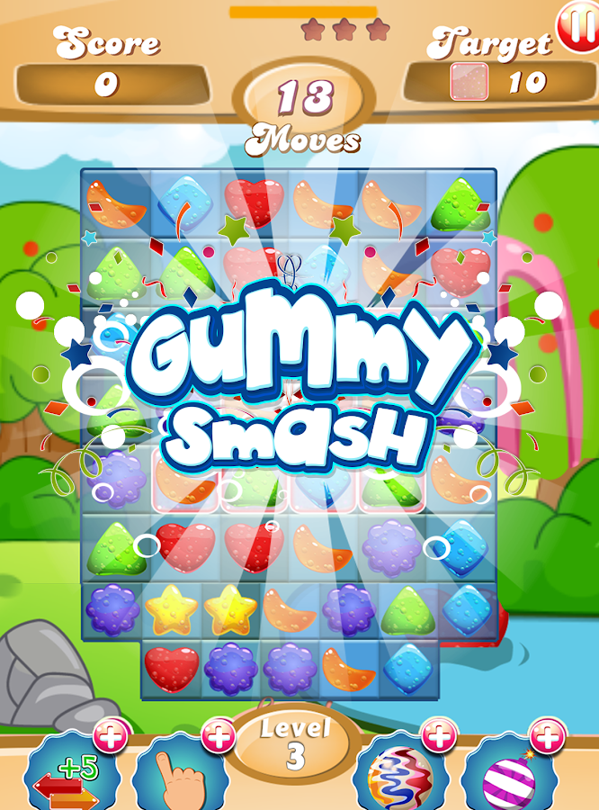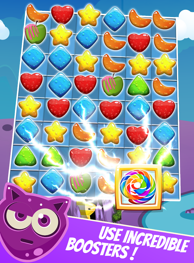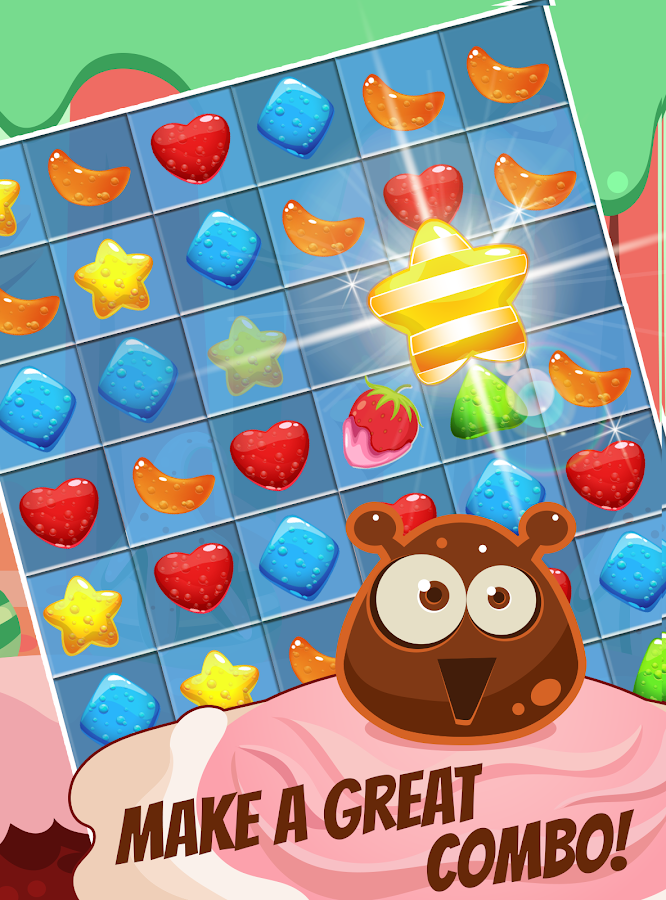 Match mouthwatering jelly gummy strategically. Check whether it is possible to dash four or five of gummy. If you can get striped gummy , yummy twist or gumdrop , it will be easier to drop more gummy. Show your brainpower in this brain training puzzle game. To crush gummy candy has never been so funny. Follow your match three adventure on level map offering different gummy gemmy lands . Life is sweet with these gumy juicy j jellies. Become the best candy smasher of everlasting chewy candies. Each crushed gummy increases your score. To play match 3 games and to crash juice cubes is good choice to pass time. Instead of gummy bear or panda bear, there are lots of juice cubes, lolly and scrumptious; mouthwatering candies everywhere of this sugar land.