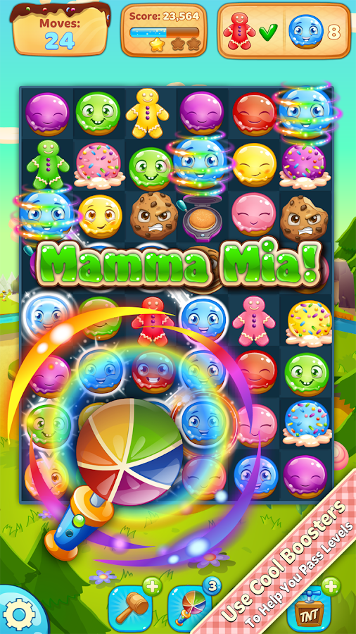 Help the Happy and Delicious Donuts save their world from the polluting, evil Ovens. Use your Match-3 skills to pop, burst and explode any obstacles in your way. The evil Ovens think the tiny Donuts have no chance against them. Little do they know that with you on their side, it is the Ovens who stand no chance. Take up the fight and help the Donuts make their world sweet and peaceful once more. Will you dip into the Donut world today?