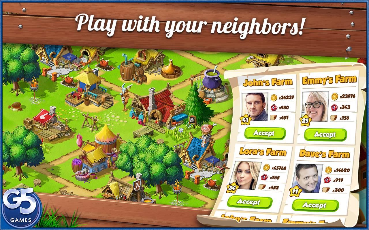 Drag your fingers to - PLANT fresh crops - COOK delicious food - FEED lovely pets - GREET friendly neighbors - TRADE with farmers from all over the world - COMPLETE challenging missions - DESIGN the prettiest farm with hundreds of decorations The game is free to play but some of the contents can be purchased for real money. Internet connection is required.