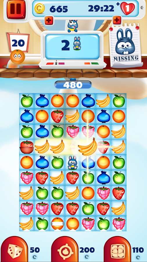 Get yourself in the mood for the ultimate match 3 puzzle adventure and prepare for the most thrilling fruit legend ever! Available as a totally free app, ▼Fruit Pop Match 3 Puzzle Games▼ is a sensational match three game that you wouldn't want to miss! Swipe and pop fruit to achieve challenging yet fun puzzle objectives, dodge persistent obstacles, activate astonishing fruit blast effects and experience a wholly new “puzzle adventure”! A crazy bunny adventure is about to start! Meet your new friend, the cutest bunny in the world and let him lead you through his juicy fruit farm! Enjoy the colorful and cheerful graphics, amusing sound effects and the already known mechanics of popular “fruit splash” games. Top-notch performance, smooth and addicting gameplay, impressive visuals – all await you in the unique fruit matching game. “Fruit mania” begins!
