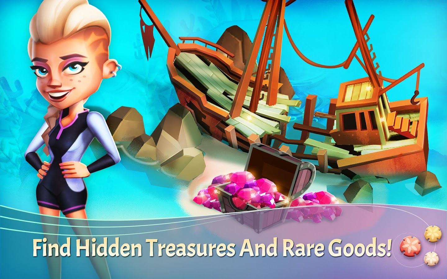 - Discover hidden treasures and rare goods in the sunken city