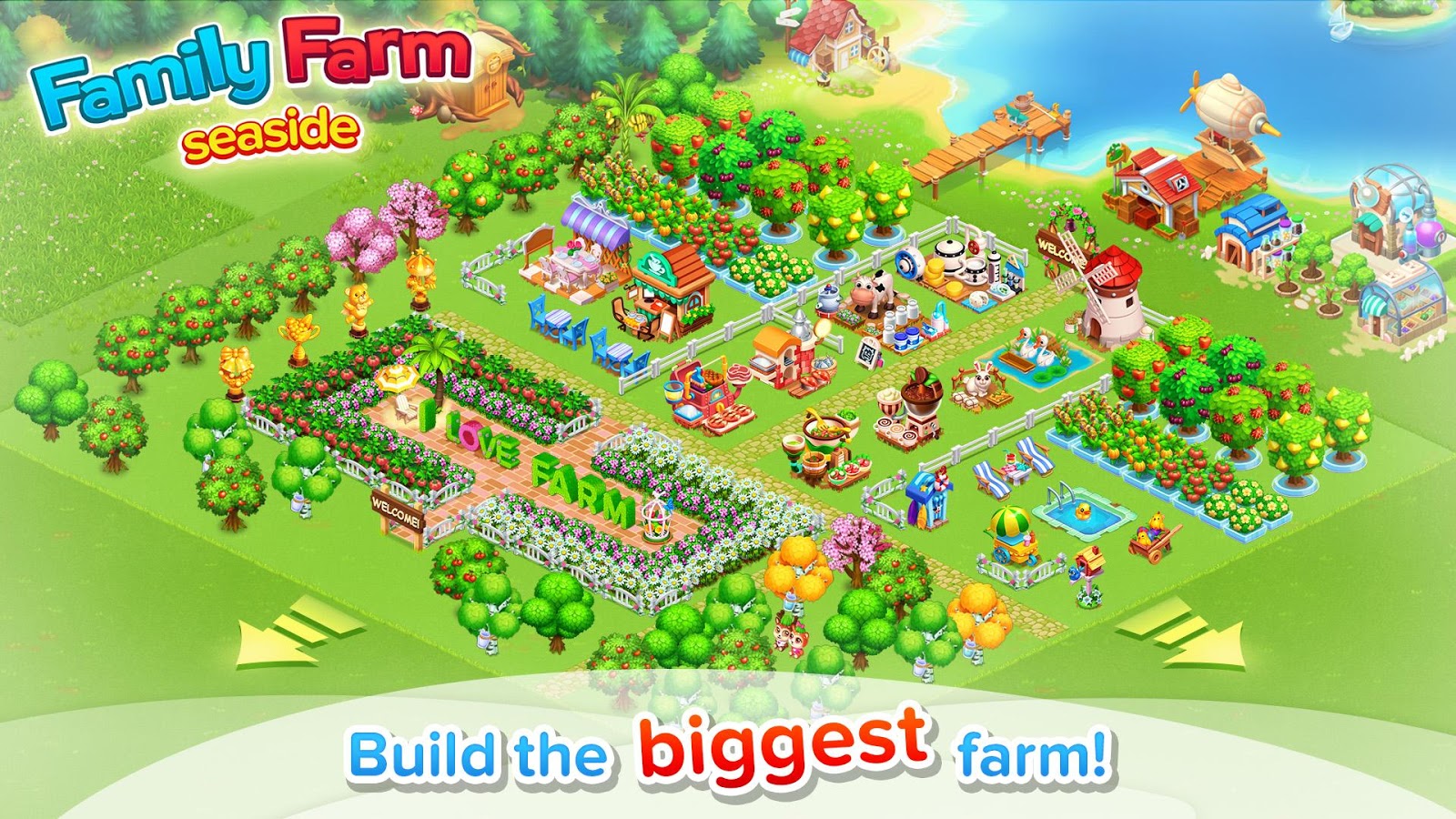 Family Farm Seaside is a beautiful and fun farming simulation game. Raise cute farm animals and harvest diverse crops to make your farm a success! Family Farm Seaside can be played on mobile devices, such as your phone or tablet, so you can bring your farm with you wherever you go! It's up to you to make your dream farm by the seaside. Start building your dream farm now.