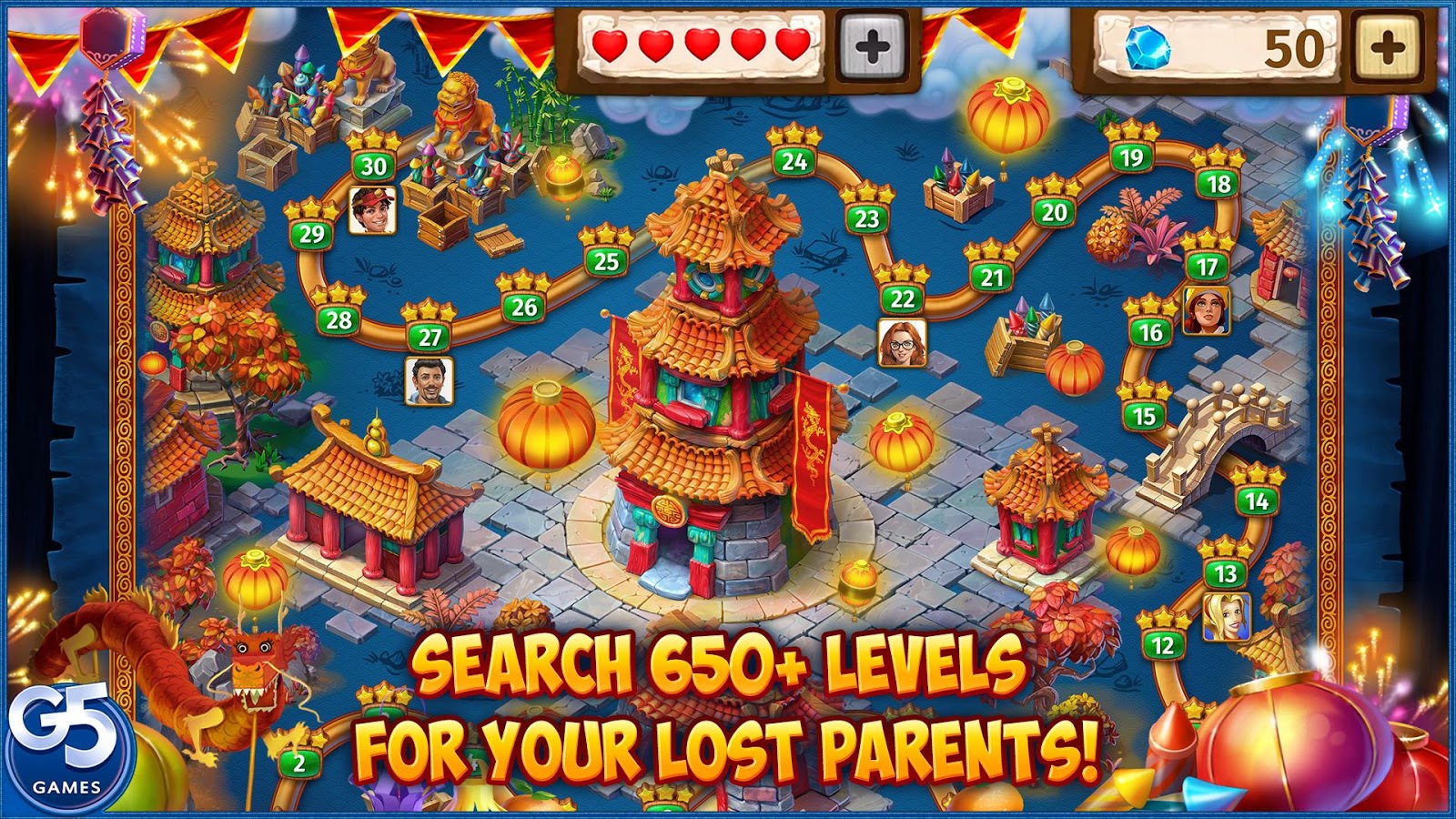 Enjoy a new take on Mahjong Shanghai as you help a young girl and her grandfather traverse the globe in search of her lost parents. Make your way by pairing tiles in order to dismantle hundreds of layouts. Collect achievements for special accomplishments while taking advantage of innovative gameplay twists like Shuffle, which allows you to get out of a difficult situation, or Firecracker, a tool for blowing up multiple pairs of tiles. Visit the Forbidden City, Virupaksha Temple, the Taj Mahal and the famous Mount Fuji as you fulfill challenging quests and earn gold stars for completing levels as fast as you can!