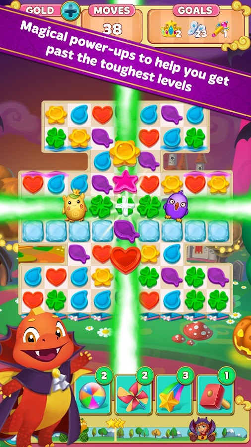 Trick or treat! After a long wait, Halloween has finally come to the kingdom! On the eve of the holiday, some little troublemakers hid all the candy and locked the people of the kingdom in cages! Now Halloween might have to be called off. Grab your Jack-o’-lanterns and head out with your little dragon in search of candy and free all the fairytale creatures from captivity. Only you can give the people a happy Halloween!