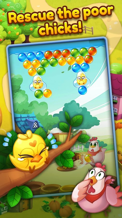 Shoot through bubbles in hundreds of levels to save the chicks, squish spiders, and beat the fox! But watch out, as Mr. Fox has set up numerous traps like the slime bubble to keep you from reaching your goal!