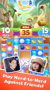 Heroes around the Ice Age world. BATTLE THE ICE • Swipe to move fruit in any direction and match 3 or more of the same kind. • Loads of match-3 puzzle challenges to crack. • Master matching in-game modes like Stockpile, Acorn Avalanche and Fruit Sculptor. • Break out various boosters to turn even the hardest stage into slush! A WORLD OF ICY WONDER • Seek treasure in many unique worlds like the Prehistoric Jungle, Grasslands and Glacier. • Prove you're the best as you compete against Ice Age characters in exciting boss battles. • Be the hero in a fun and hilarious story with your top Ice Age characters. • Overcome obstacles by playing exclusive levels with Scrat. CHILL & SWIPE WITH FRIENDS • Join the community for fun daily and weekly events! • Send gifts to lend your friends a hand. • Challenge friends to the best real-time PvP puzzle ""snowdown."" • Be the best at matching and rise to the top of the leaderboard. Ice